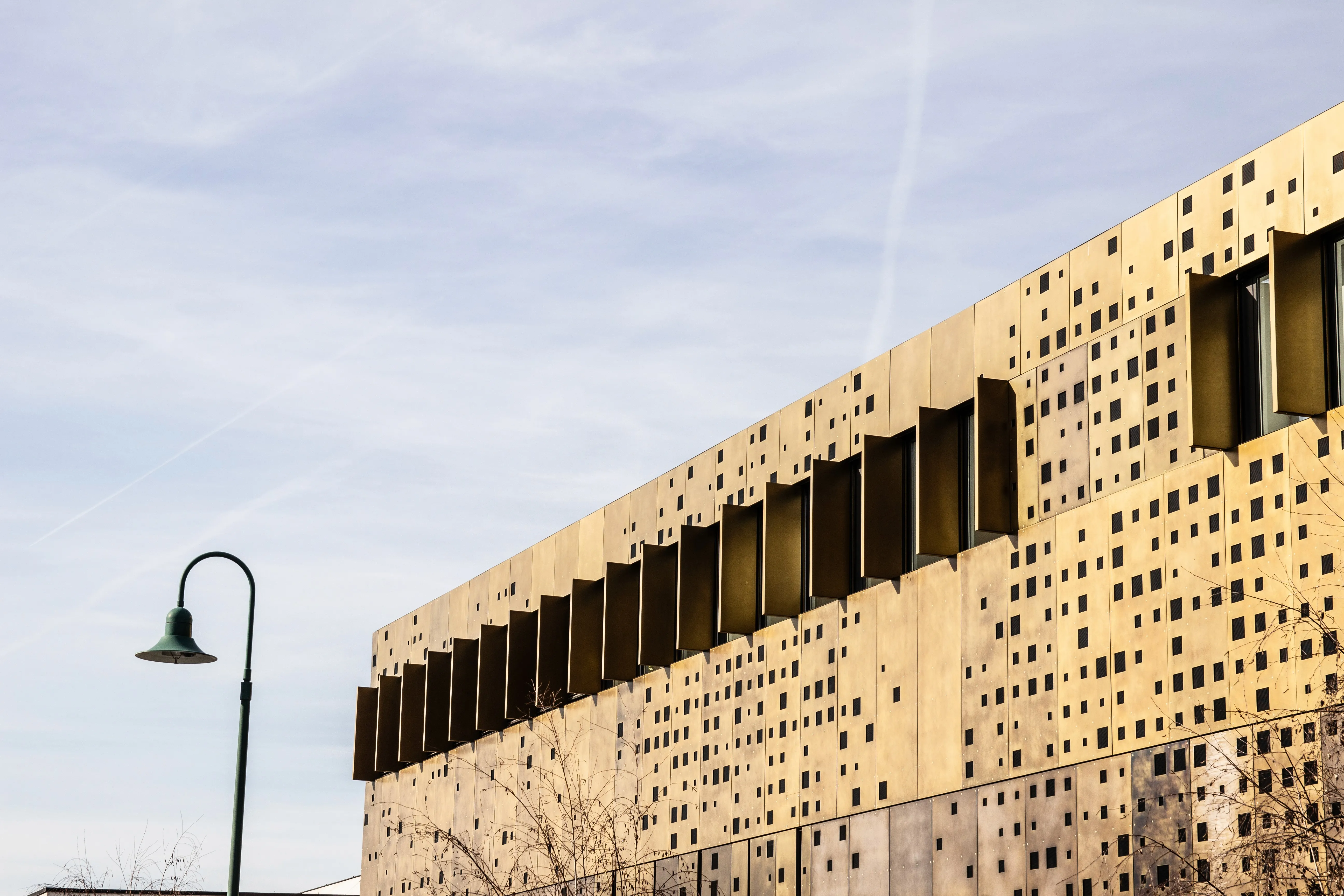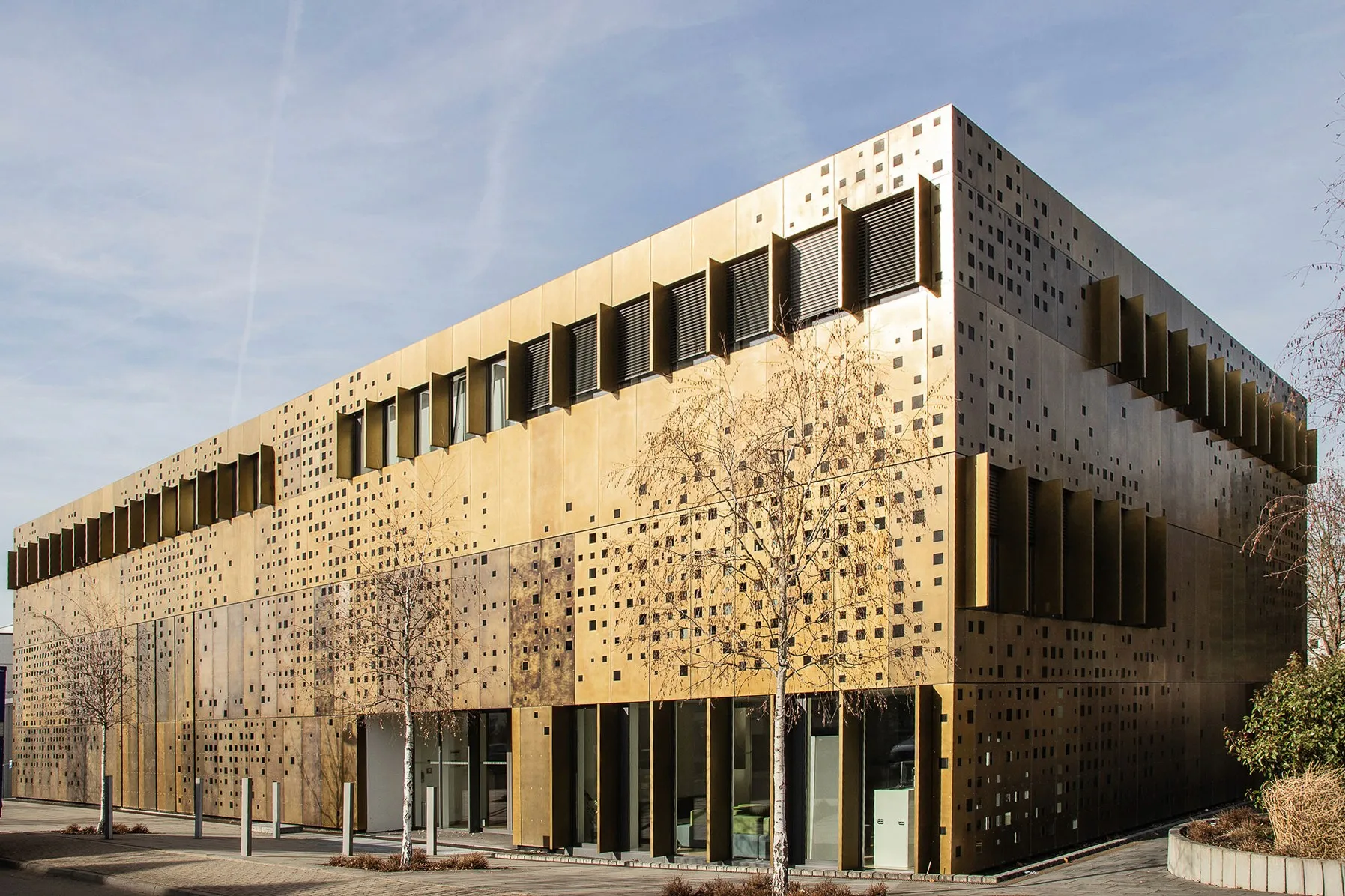 ZinCuTec realized the complete facade cladding in brass Dibond panels. The large elements were precisely tailored to the building structure and create a calm, homogeneous surface with clear lines. Through finely tuned surface treatment, the brass received a controlled, warm tonality, giving the technological character of the institute a valuable, architectural depth.