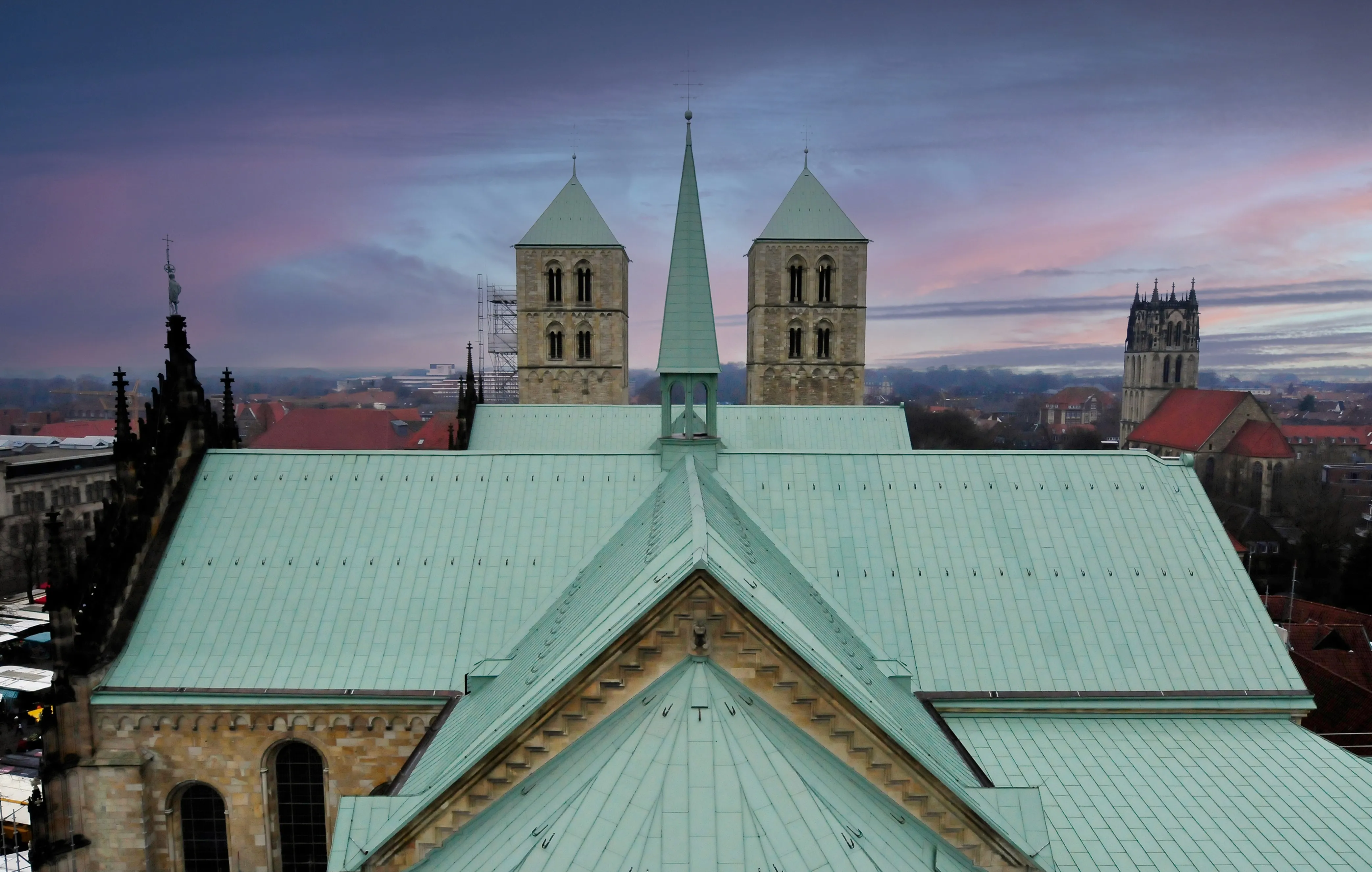 As part of the roof renovation at St. Paulus Dom in Muenster, a large-scale metal surface was newly crafted. The sacred structure, with its distinctive silhouette, calls for a materiality that conveys both durability and dignity.